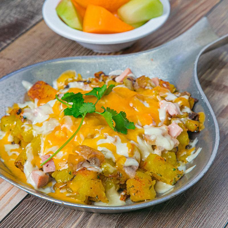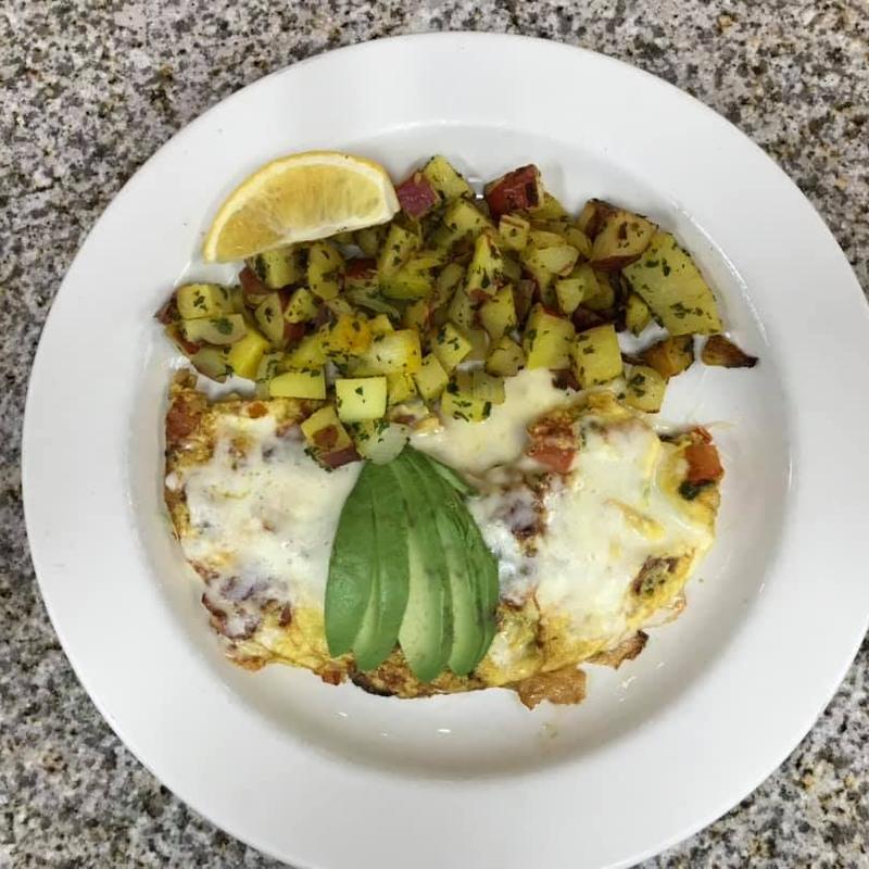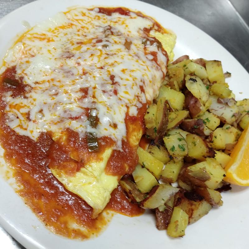 Our omelettes are prepared with three large eggs. Served with your choice of Home Fries, Hash Browns, Cottage Cheese, Sliced Tomatoes, or Fresh Fruit. Choice of Toast, Biscuit, and Gravy or Pancakes.